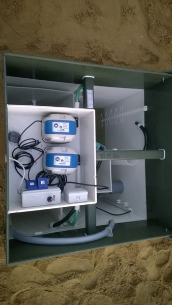 Сточные воды поступают в приемную камеру септика ТОПАС 5 Пр. Сюда поступают бытовые стоки, здесь происходит дробление крупных фракций с помощью аэратора и начинается первичная биологическая очистка.